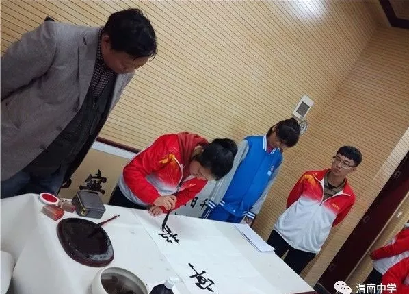 活动由副校长屈国旺主持,渭南中学两百多名师生代表参加了本次活动。在学校为六位书法家颁发“渭南中学书法教育顾问”的聘书后,陕西省教育书法研究会副会长兼秘书长马伟通过两幅作品向现场师生诠释了书法的魅力以及书法写作的注意事项,和同学们分享了关于书法的所见所闻所感,用事实证明了世界人民对书法魅力的痴迷和书法长盛不衰的文化意义。